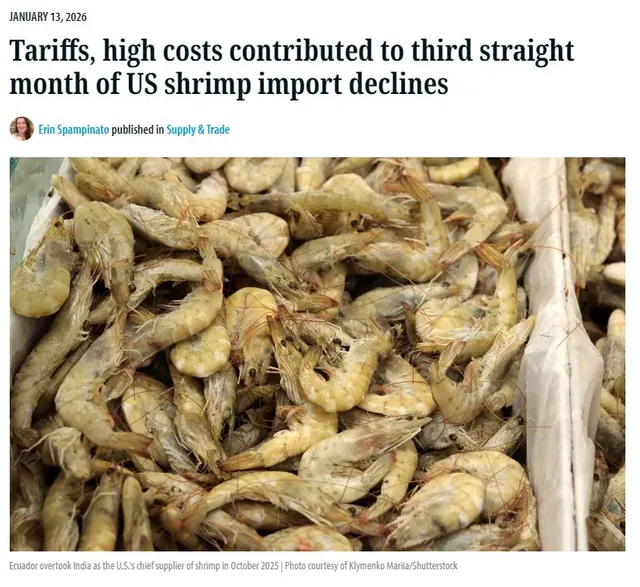 기사에 따르면 관세가 발효된 작년, 꾸준히 새우 수입량이 줄어들기 시작했고