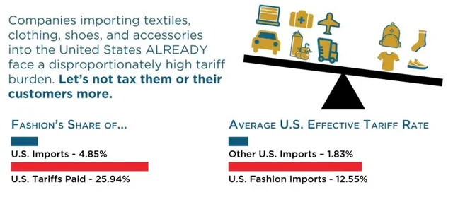 미국 전체 수입부문에서 패션분야가 차지하는건 5%가 안되지만, 관세는 25%이상 차지할것으로 예상됨