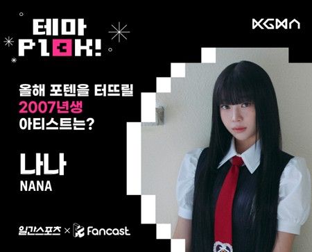 나나는 일간스포츠와 팬캐스트가 지난 9일부터 22일까지 팬캐스트를 통해 공동 진행한 ‘올해 포텐을 터뜨릴 2007년생 아티스트는?’ 테마 픽 투표에서 총 1만 3377표를 획득하며 1위를 차지했다.