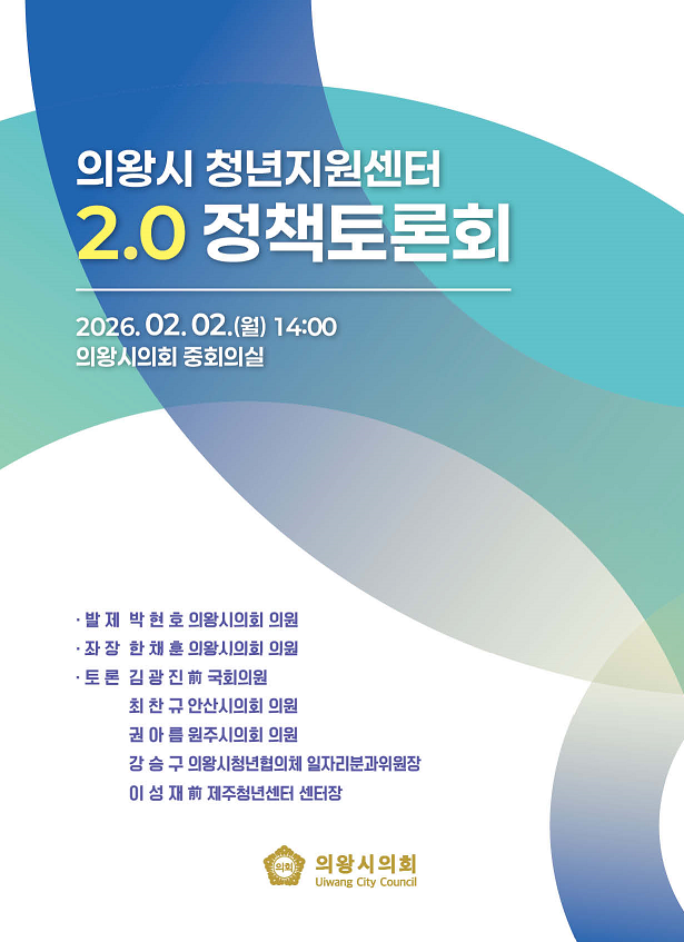 [와이뉴스] 의왕시의회가 한채훈 의원이 오는 2월 2일(월) 오후 2시, 의왕시의회 중회의실에서 「의왕시 청년지원센터 2.0 정책토론회」를 개최한다고 밝혔다.