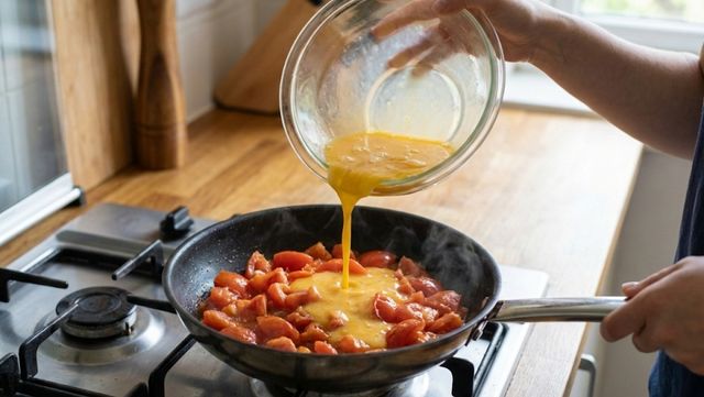 토마토에 계란물을 붓는 모습 / 기사 내용을 바탕으로 제작한 AI 이미지