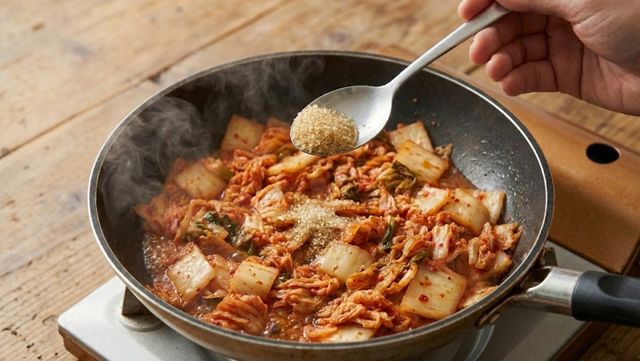 김치 볶음에 원당을 넣는 모습 / 기사 내용을 바탕으로 제작한 AI 이미지