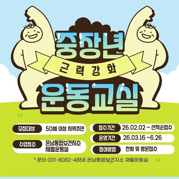 모집 대상은 양주시에 거주하는 50세 이상 남녀다. 특히 은현면과 남면 거주자는 우선 선발 대상에 포함된다. 신청은 2월 2일부터 선착순으로 접수하며, 은남통합보건지소 재활운동실을 통해 신청 및 문의가 가능하다.