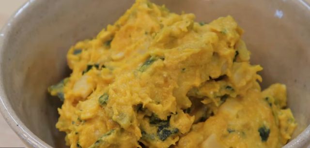 잘 익은 단호박을 반 정도 대충 으깬 후 김을 식혀준다. 식힌 단호박에 옥수수콘 2큰술, 그릭요거트 2큰술, 마요네즈 1큰술, 꿀 1큰술, 소금 1/4 티스푼을 넣은 뒤 골고루 버무려준면 맛있는 단호박 샐러드가 완성된다.