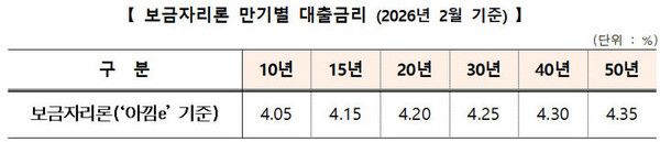 이에 따라 '아낌e-보금자리론' 기준으로 만기 10년은 연 4.0%, 만기 50년은 4.35%가 적용된다.