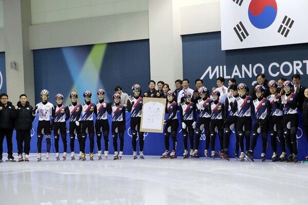 이날 방문단은 웨이트 트레이닝장, 메디컬센터, 쇼트트랙 훈련장 등 주요 훈련시설을 둘러보고, 선수식당에서 배식 봉사에 참여하며 직접 선수들을 응원했다.