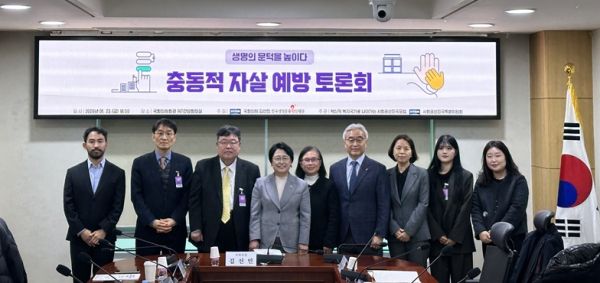 이러한 상황에서 오늘(23일) 국회의원회관에서는 국회 보건복지위원회 소속 김선민 의원(조국혁신당)과 한국생명존중희망재단이 공동 주최하고 사회권선진국포럼 및 조국혁신당의 사회권선진국특별위원회가 공동주관하는 ‘생명의 문턱을 높이다, 충동적 자살 예방’ 토론회가 개최됐다.