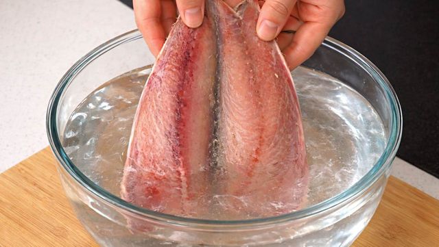 '식초'는 비린내 제거 역할을 한다. 생선 비린내의 주요 원인인 트리메틸아민은 산성 환경에서 냄새가 약해진다. 소량의 식초만으로도 비린내가 눈에 띄게 줄어든다. 동시에 단백질 표면을 살짝 응고시켜 해동 중 살이 부서지는 것도 방지한다.