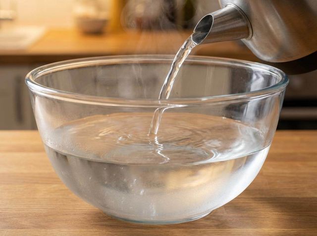 온도계가 없어도 미지근한 물을 만드는 방법은 간단하다. 찬물 5컵에 끓는 물 2컵을 섞으면 손을 넣었을 때 따뜻하다고 느껴지는 정도가 된다. 여기에 굵은 소금 2큰술과 식초 1큰술을 넣어 잘 섞는다. 레몬즙이 있다면 식초 대신 사용해도 된다.