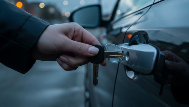 차키로 문을 여는 모습 (AI로 제작됨)