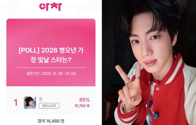 방탄소년단(BTS) 진이 2026 병오년 가장 빛날 스타 1위로 선정되며 글로벌 슈퍼스타의 위엄을 과시했다. 12월 29일부터 1월 4일까지 아이돌차트에서 진행된 이번 설문에서 진은 총 1만 760표를 획득하며 정상에 올랐다.
