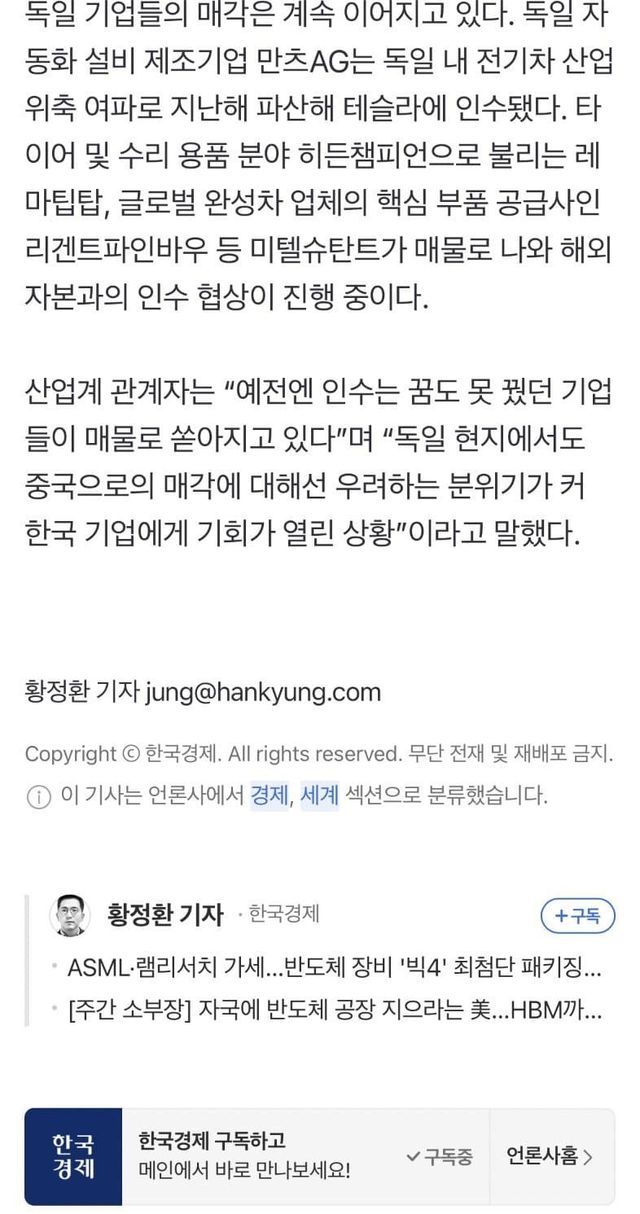 무너진 독일 100년 기업들…한국기업이 쇼핑중