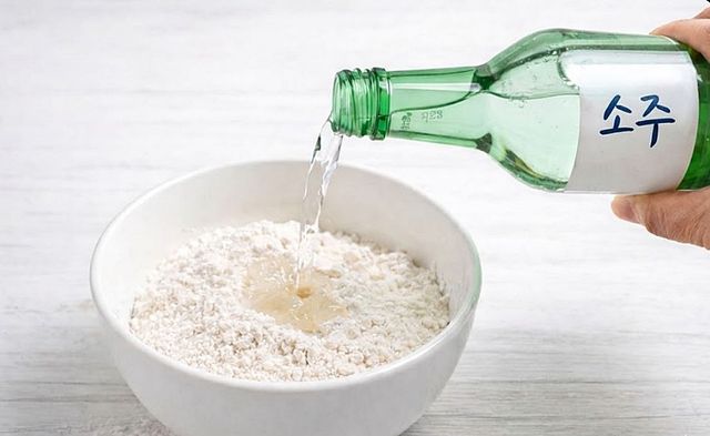 밀가루에 소주를 넣는 모습. 기사 이해를 돕기 위해 AI를 활용해 제작한 자료 사진입니다. 실제 모습과 다소 차이가 있을 수 있습니다.