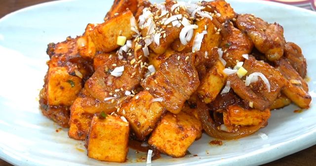두부는 물기를 최대한 빼는 것이 중요하다. 물기가 남아 있으면 양념이 희석되고 식감도 흐물해진다. 팬에 삼겹살을 볶은 뒤 두부를 넣고 가볍게 굴려 겉면을 코팅하듯 익혀준다. 이 과정에서 두부가 쉽게 부서지지 않도록 뒤집는 횟수는 최소화하는 게 좋다.