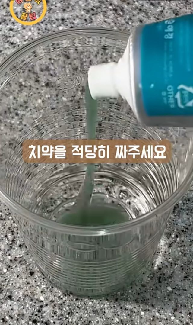 식초와 치약을 섞는 모습 / 유튜브 '생활속꿀팁'