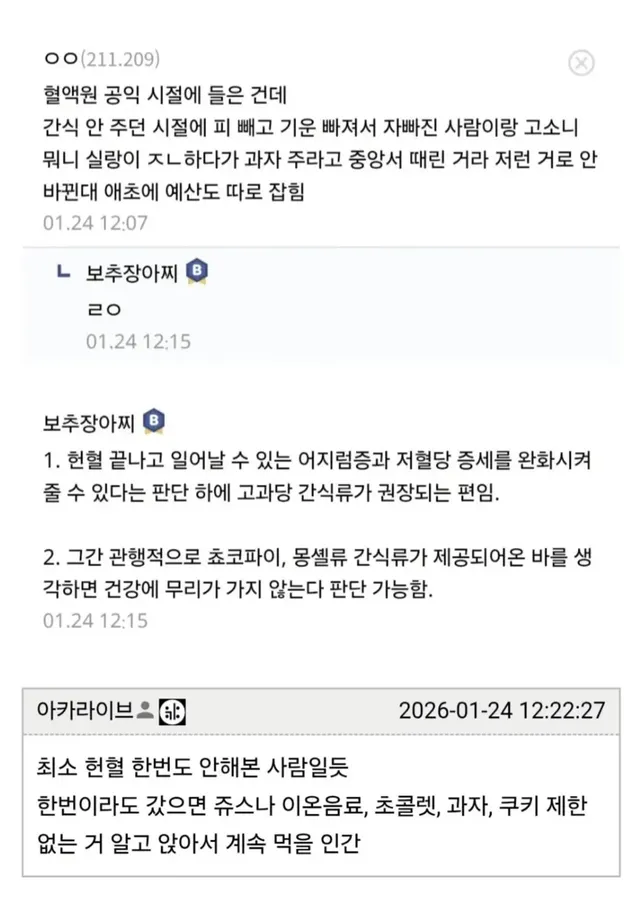 헌혈자들에게 두쫀쿠 주지 마라고 민원 넣으려는 사람