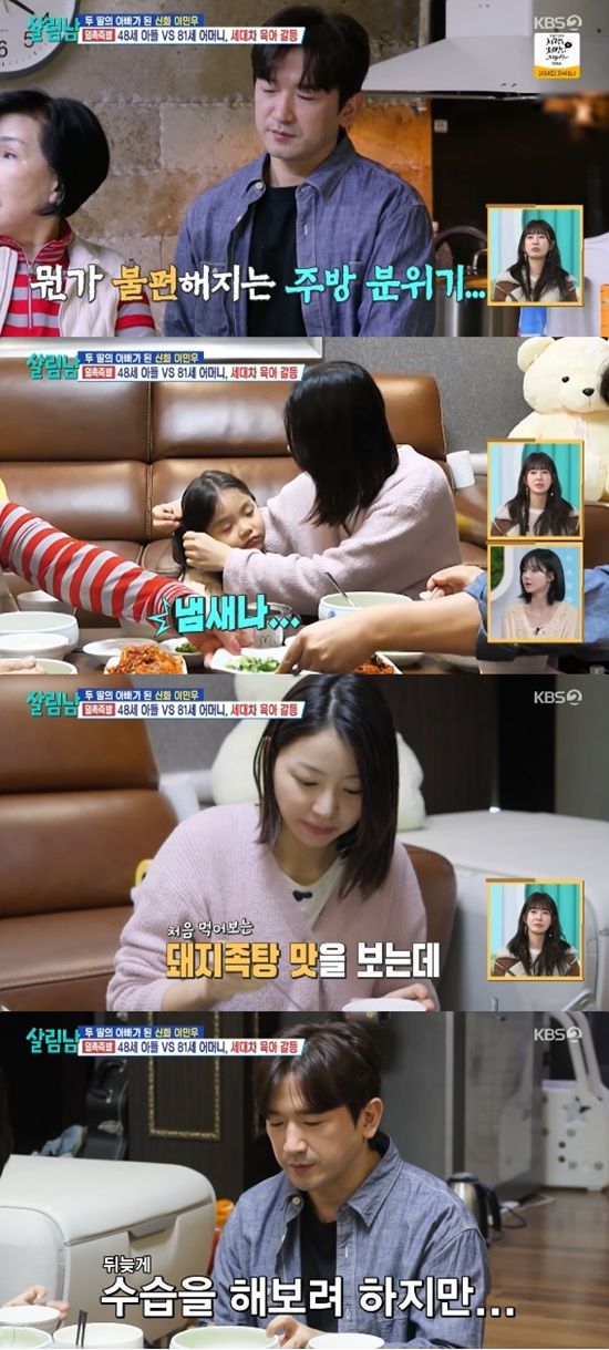 이민우 가족은 우여곡절 끝에 완성된 돼지족탕으로 식사를 시작했다. 리아는 돼지족탕을 맛보고 "냄새나. 맛이 없다"며 인상을 찌푸렸다.