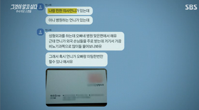 홍성우는 “나래 자체가 의사라고 믿고 성형외과 의사 언니라고 보냈는데 그 문자를 보고 ‘아니야 성형외과는 아닐거야’라고 굳이 반문할 필요가 없지 않나”라며 자신 역시 주사 이모를 의사로 알았다고 전했다.