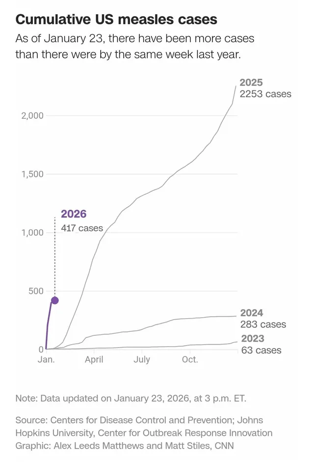 백신에 대한 불신으로 급증하는걸로 추정중인데 2000년 홍역 퇴치국 타이틀을 얻었던 미국에서 홍역이 다시 유행