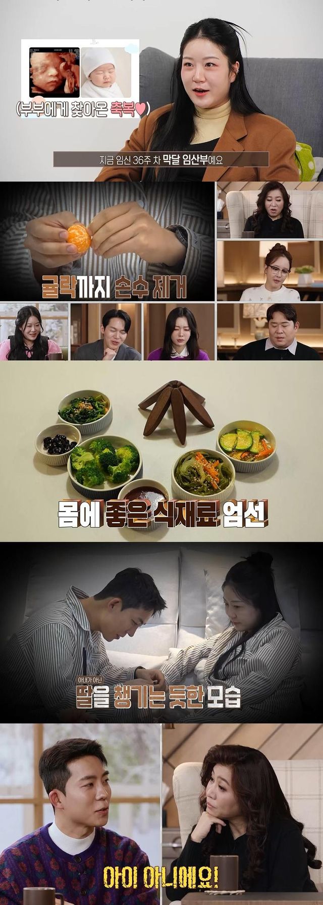 결혼 4년 차인 '풀세팅 부부'는 여전히 깨가 쏟아지는 달달한 일상으로 눈길을 끈다. 특히, 만삭 아내를 향한 남편의 지극 정성에 스튜디오에서는 연신 탄성이 터져 나왔다고. 남편은 출근 전 꼭두새벽부터 일어나 임산부 아내의 영양을 고려한 시금치, 브로콜리 등 채소 반찬부터 양념 갈비까지 손수 준비하며 MC들을 놀라게 한다. 남편은 한식뿐 아니라 고급 레스토랑급 양식까지 뚝딱 만들어내 감탄을 자아낸다.