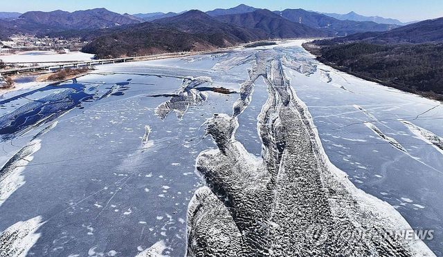 한파가 몰아친 지난 20일 경기도 양평군 두물머리 주변 남한강이 얼어있다 / 연합뉴스