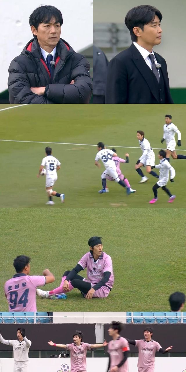 경기장 안의 분위기는 더욱 처절하다. 한 발짝도 물러설 수 없는 승부 앞에서 선수들은 몸을 아끼지 않고 부딪히며 매 순간 사력을 다한다. 거친 몸싸움과 숨 막히는 공방이 이어지고, 벤치의 긴장감 역시 극에 달한다. 김남일 감독은 판정과 흐름에 격앙된 듯 분노의 샤우팅을 쏟아내고, 이동국 감독은 연이은 위기 상황에 깊은 한숨을 내쉬는 모습이 포착되며 무슨 일이 벌어졌는지 궁금증을 유발한다.