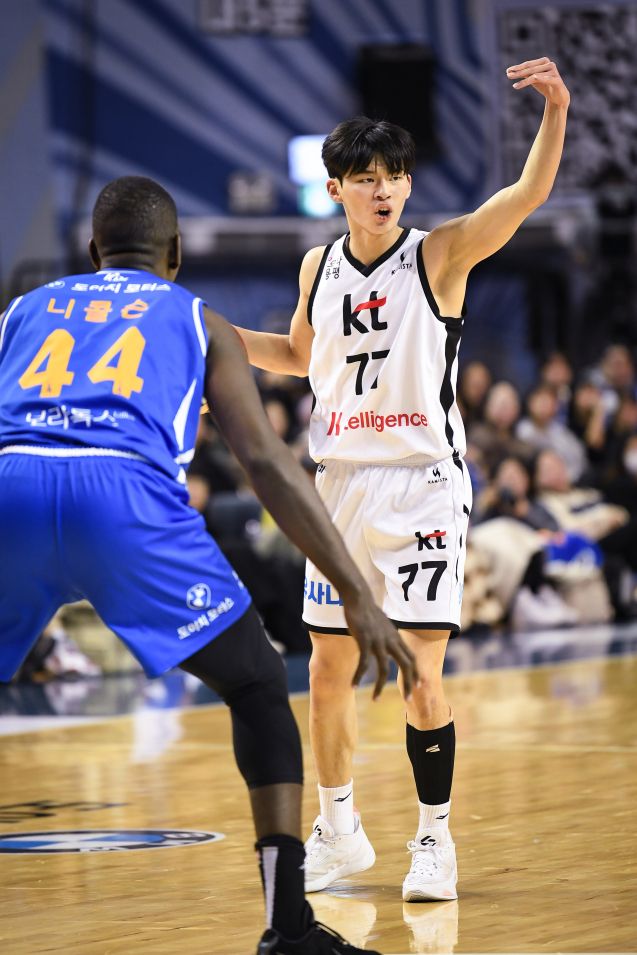 강성욱의 상승세가 가파르다. 그는 지난 10일 서울 SK전부터 삼성전까지 5경기 연속 두 자릿수 득점을 기록했다. 특히 지난 14일 부산 KCC전에서는 개인 한 경기 최다인 20점을 책임졌다. 삼성전에서 기록한 7어시스트 역시 개인 한 경기 최다 타이 기록. 최근 5경기 연속 30분 이상 출전하며 문경은 KT 감독의 전폭적인 신뢰를 받는 강성욱은 어느새 시즌 평균 9.9점 3.8어시스트 2.3리바운드까지 기록을 끌어올렸다.