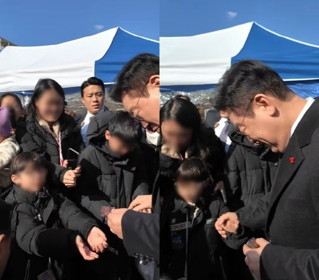 이 대통령은 미팅에 참석하기 전 울산 울주군 남창옹기종기시장을 깜짝 방문했다. 그때 초등학생으로 보이는 한 아이가 이 대통령에게 ‘두쫀쿠’를 건넸다. 이를 받은 이 대통령은 아이와 악수를 한 뒤 두쫀쿠를 주머니에 넣었다.