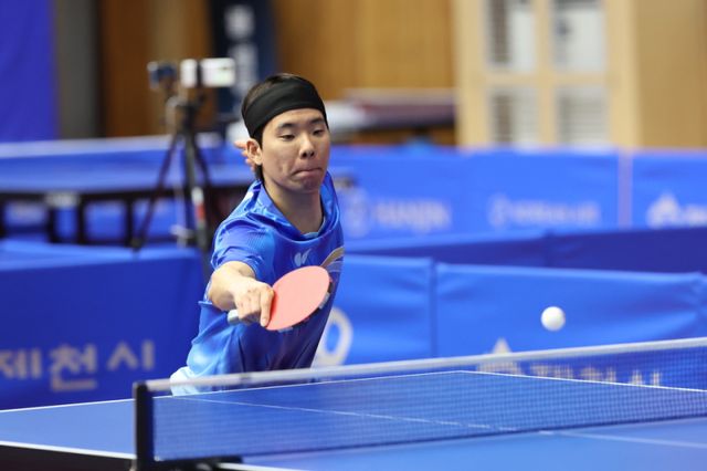 남자단식은 16강전에서 파란이 일었다. 최근 각종 국제대회에서 맹활약하며 우승 후보로 손꼽히던 장우진(30·세아)이 국군체육부대 소속 김장원(23)에게 패하면서 조기 탈락했다. 김장원의 돌풍을 잠재운 주인공이 임종훈(29·한국거래소)이다. 8강전에서 풀-게임접전을 벌이다 3대 2(11-8, 10-12, 7-11, 11-9, 11-7)로 역전승했다.