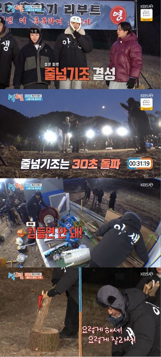 25일 방송된 KBS 2TV '1박 2일 시즌4'에서는 김종민, 문세윤, 이준, 딘딘, 유선호가 게스트 붐, 김재원과 혹한기 캠프에 나서는 모습이 전파를 탔다.