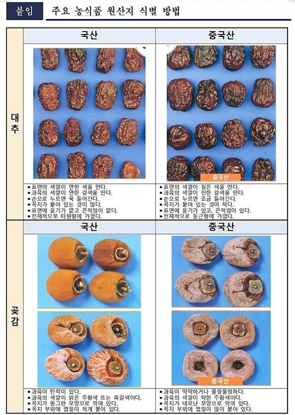 경북농관원 관계자는 "소비자가 농식품을 믿고 구입할 수 있도록 원산지 표시 점검과 홍보를 강화할 계획"이라며 "원산지 표시가 없거나 거짓 표시가 의심될 경우 전화 또는 농관원 누리집을 통해 신고해 달라"고 당부했다.