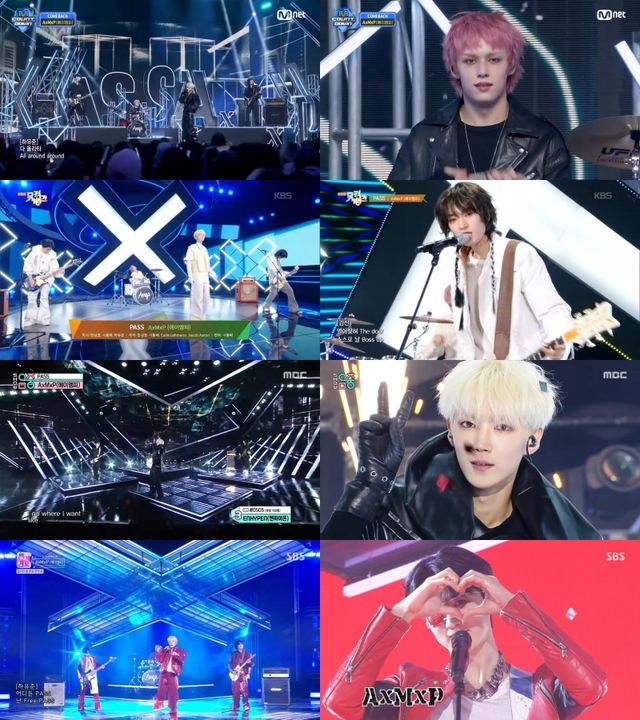 이어서 AxMxP는 지난 22일 Mnet ‘엠카운트다운’을 시작으로 23일 KBS2 ‘뮤직뱅크’, 24일 MBC ‘쇼! 음악중심’, 25일 SBS ‘인기가요’에 출연해 첫 번째 타이틀곡 ‘PASS’로 컴백 무대를 펼쳤다. ‘PASS’는 어떤 장애물도 우리를 막을 수 없다는 자신감을 드러낸 곡으로, 직선적인 가사와 폭발적인 사운드가 특징적이다. AxMxP는 프론트맨 하유준의 파워풀한 래핑을 중심으로 화려한 밴드 퍼포먼스를 선보이며 시청자들의 눈과 귀를 모두 사로잡았다.