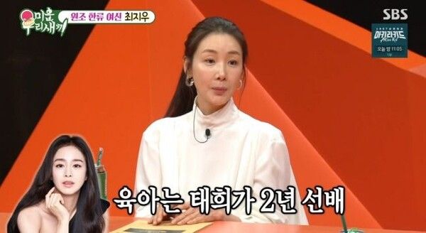 뉴시스 보도에 따르면, 최지우는 25일 방송한 SBS TV 예능프로그램 '미운 우리 새끼'에 나와 출산과 육아에 관한 얘기를 했다.