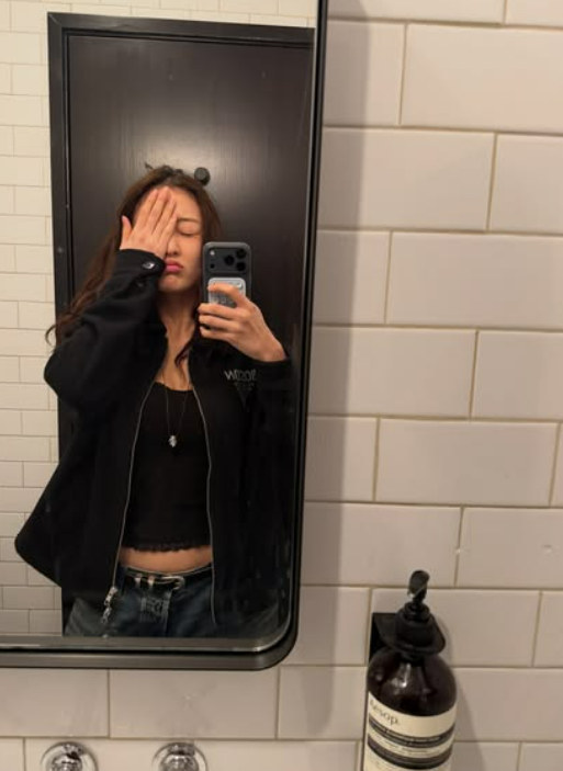 또 다른 사진에서는 지효의 털털하고 귀여운 반전 매력이 돋보인다. 한 손으로 눈을 가린 채 장난기 가득한 표정을 짓고 있는 모습은 보는 이들의 미소를 자아낸다. 편안한 블랙 집업 가디건과 데님 팬츠를 매치한 내추럴한 차림임에도 불구하고, 숨길 수 없는 화려한 이목구비가 감탄을 유발한다.