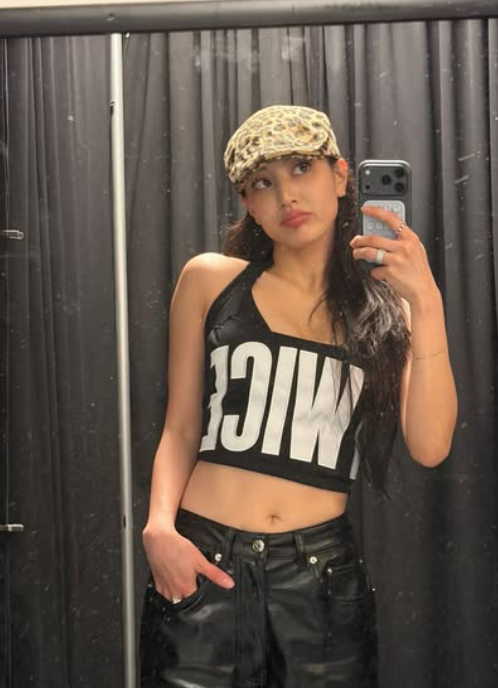가장 먼저 눈길을 끄는 것은 강렬한 호피 무늬 헌팅캡을 매치한 거울 셀카다. 지효는 'TWICE' 로고가 선명하게 새겨진 블랙 홀터넥 크롭톱에 블랙 가죽 팬츠를 매치해 탄탄한 보디라인과 복근을 가감 없이 드러냈다. 시크한 표정과 어우러진 힙한 패션 감각은 지효만의 당당한 에너지를 완성하며 '워너비 아이콘'다운 면모를 입증했다.