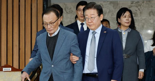 2024년 11월 13일 이재명 당시 더불어민주당 대표가 이해찬 당 상임고문을 부축해 국회에서 열린 당 외교안보통일자문회의 출범식에 입장하고 있다. / 뉴스1