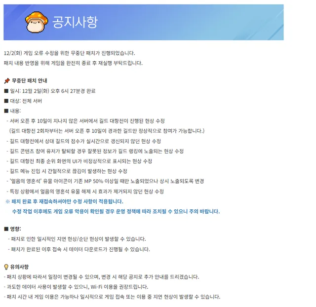 이후 잠수함 패치함 ㅋㅋㅋㅋㅋㅋㅋㅋㅋㅋㅋ 공지에는 단 1줄도 관련된 내용을 적어두지 않음