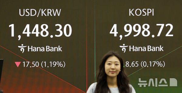 26일 서울 외환시장에 따르면 이날 오전 10시 현재 원·달러는 전일대비 18.2원 급락한 1447.6원에 거래 중이다. 환율은 19.7원 하락한 1446.1원에 개장했다. 종가 기준 이달 7일(1445.8원) 이후 처음으로 1440원대에 진입하며 나흘째 약세를 보이고 있다.