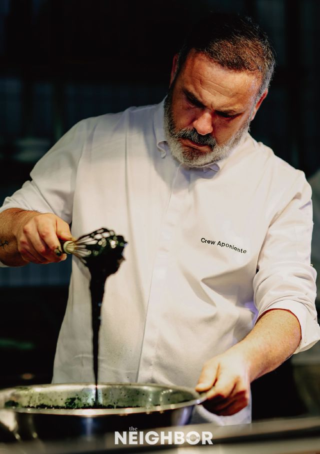 지난 1월 5일, 히스패니아에 스페인의 유명 셰프 앙헬 레온(Ángel León)이 등장했다. 단 한 차례의 디너 이벤트를 위해서였다. 앙헬 레온 셰프는 지속 가능한 요리를 제안하는 혁신가이자 ‘바다의 셰프’라 불리는 생선 요리 전문가다. 그가 이끄는 레스토랑 ‘아포니엔테(Aponiente)’는 미쉐린 3스타와 그린 스타를 획득했다. 레스토랑이 위치한 안달루시아의 항구 도시 카디스에서 성장한 셰프에게 생선과 해산물은 익숙한 재료였다. 그는 어선에서 일하며 스페인에서만 매일 4만 톤 이상의 생선이 버려진다는 사실을 알았고, 이를 활용할 방법을 강구했다. 그가 생선을 되살린 방식은 독창적이다. 시작은 생선 살을 모아 샤퀴테리 형태로 가공한 것이었다. 그는 여기서 멈추지 않았다. 눈알, 부레, 껍질 등 손질 후 으레 버리는 재료를 활용하고, 생물학 연구를 거쳐 플랑크톤을 재배하기 시작했다. “플랑크톤은 색깔에 따라 맛이 다르다. 초록색은 채소, 핑크색은 정어리, 갈색은 사프란 맛이 난다”는 게 셰프의 설명이다. 옛 밀 방앗간을 개조한 레스토랑은 강과 바다가 만나는 지점에 위치하는데, 해양 농장을 조성해 식재료를 기른다. 팜투테이블처럼 이른바 ‘바다에서 테이블로(Sea-to-Table)’ 철학을 실천하는 것이다. 짐작하듯 아포니엔테에는 요리사뿐 아니라 농부, 생물학자 등 여러 전문가가 함께한다. “바다가 새로운 식재료의 보고라는 사실을 발견하길 바란다”라고 셰프는 전했다.