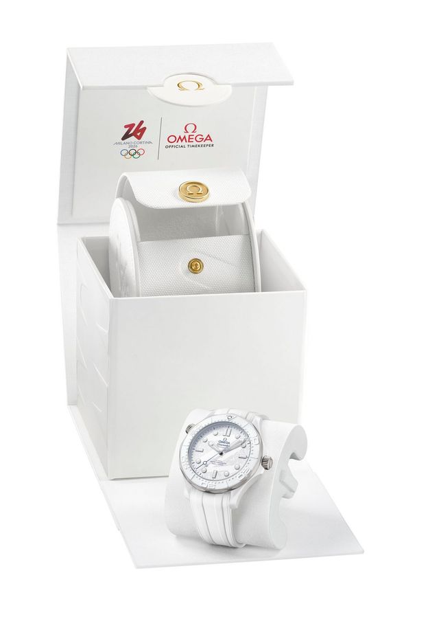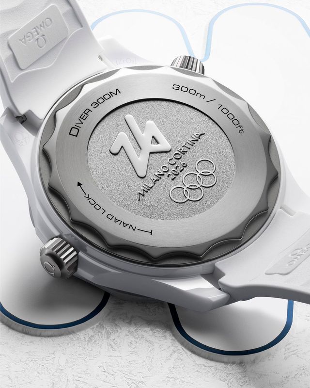 2026 밀라노-코르티나 동계올림픽의 공식 타임키퍼인 오메가는 특별 제작된 ‘씨마스터 다이버 300M’을 선보인다. 가벼우면서도 강한 두 가지 소재임 화이트 세라믹과 5등급 티타늄으로 완성되었으며, 올림픽 엠블럼에서 영감을 받아 손가락 자국 패턴의 레이저조각서리 무늬가 새겨져 있다. 코-액시얼 마스터 크로노미터칼리버 8806이 장착돼 55시간의 파워리저브를 자랑한다.