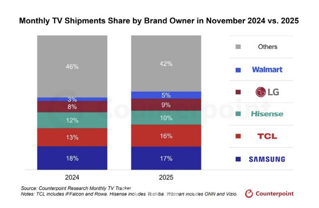 카운터포인트리서치의 밥 오브라이언(Bob O’Brien) 연구원은 “11월까지 누적 기준으로 볼 때 삼성은 TCL 대비 확고한 격차를 유지했다. 올해에도 삼성은 글로벌 TV 시장의 선두 자리를 지킬 것”이라며 “다만 TCL, 하이센스, 샤오미 등 중국 브랜드들은 다양한 세그먼트 전반에서 빠르게 존재감을 확대할 것”이라고 전망했다. 이어 “특히 미니 LED와 중·대형 화면 등 고성장 세그먼트에서 출하량을 늘리며 경쟁 압박을 한층 강화할 것”이라고 덧붙였다.