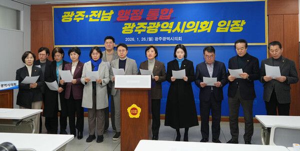 뉴시스 보도에 따르면, 시의회는 26일 '행정통합 시의회 대응 TF' 회의와 의원 총회 결과를 토대로 기자회견을 열어 "현재 광역의원 수가 광주 23명, 전남 61명으로 격차가 3배에 이른다. 이대로 선거를 치른다면 광주 시민 '과소 대표' 문제가 불거질 수 밖에 없다"며 정수 증원을 촉구헀다.