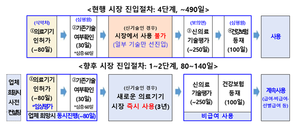 이번 개정에 따라 국제적 수준의 강화된 임상평가를 거친 새로운 의료기기를 활용한 신의료기술은 별도의 평가를 거치지 않고 시장에 즉시 진입할 수 있게 된다. 이를 통해 최장 490일 소요되던 진입기간을 최단 80일까지로 단축할 수 있다는 설명이다.