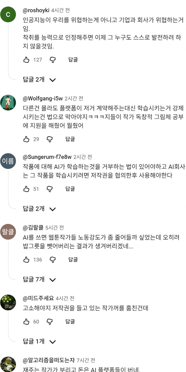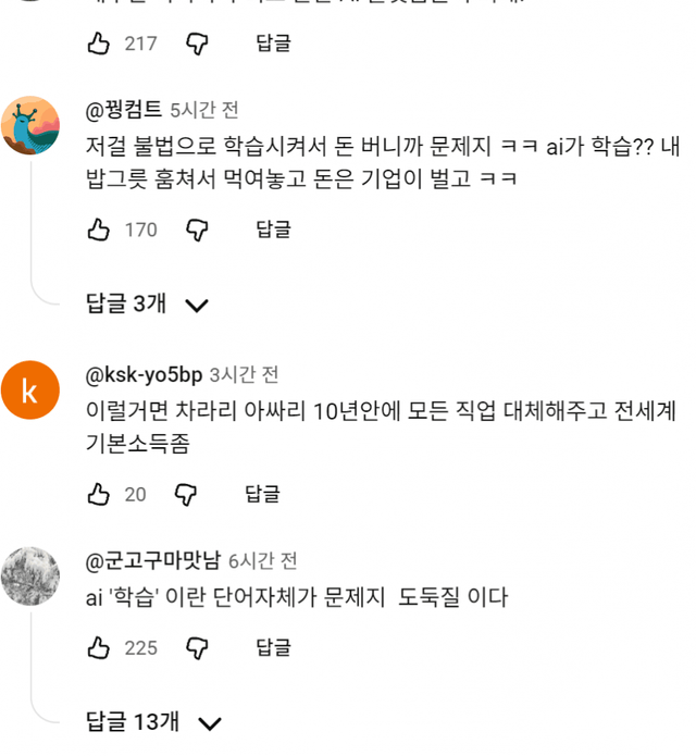 저작권 도둑질이다 vs 풀가속해서 특이점 와야한다로 나뉘네