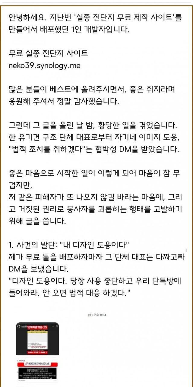 무료 실종 전단지 사이트 만들었다가 협박 당한 사람