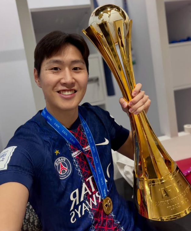2025 국제축구연맹(FIFA) 인터콘티넨털컵 우승 트로피를 거머쥔 이강인. 사진=이강인 SNS