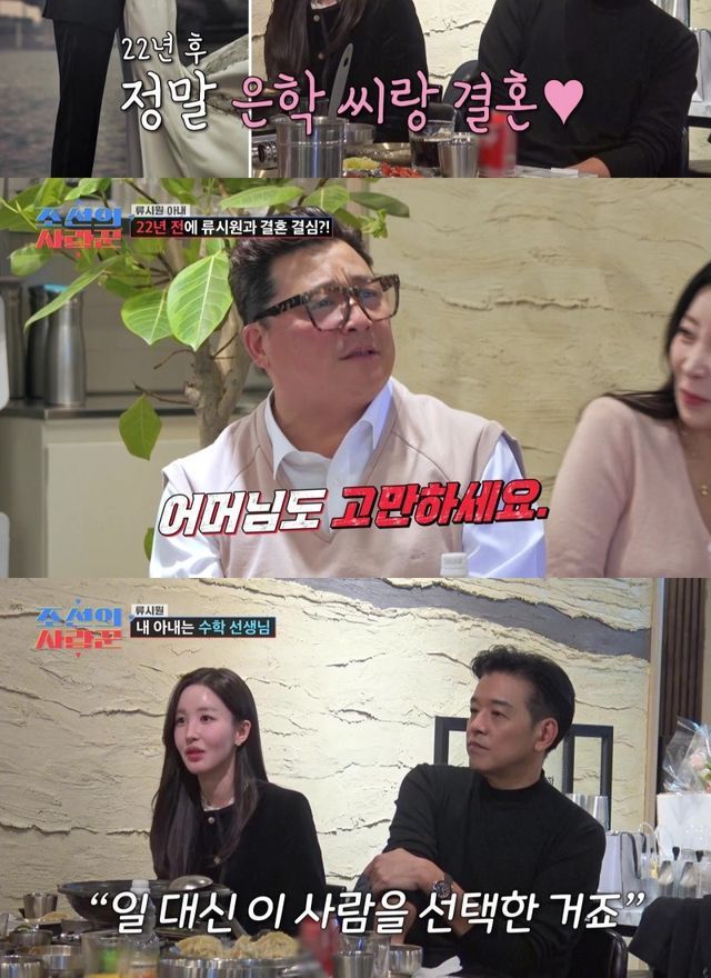또한, 류시원의 아내는 "(엄마가) 제가 어렸지만, 엄마 하이힐 신고 핸드백 메고 다니면서 '은학 씨'랑 결혼할 거라 했다"며 류시원이 남자주인공 '정은학'으로 출연했던 1998년 주말 드라마 <종이학>에 대한 추억을 끄집어냈다.
