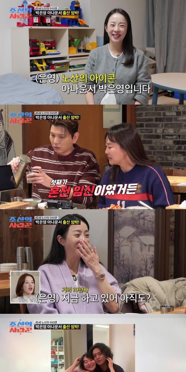 지난 26일 방송된 TV CHOSUN ‘조선의 사랑꾼’에서 45세에 둘째를 임신한 아나운서 박은영의 출산 과정을 공개했다. 박은영은 출산 전 정주리·제이쓴과 만나 29금 토크로 웃음을 자아냈다. 또한, 류시원 부부는 윤정수♥원진서 부부와 만나 솔직한 속내를 털어놓으며 친목을 다졌다.