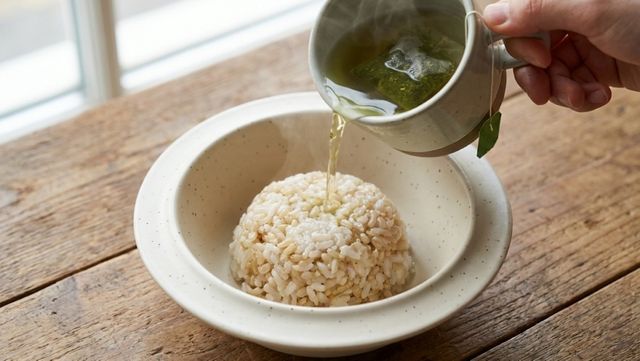 밥에 녹차를 붓는 모습 / 기사 내용을 바탕으로 제작한 AI 이미지