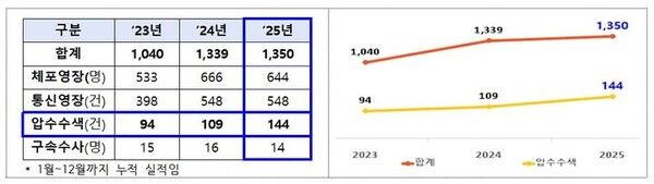 이 중 압수수색 영장 발부는 지난 2024년(109건)과 비교해 30% 증가했다. 정부가 임금체불을 노동자 생계를 위협하는 중대한 민생범죄로 보고, 고의적·악의적인 임금체불에 대해서는 강제수사를 원칙으로 대응한 데 따른 것이다.
